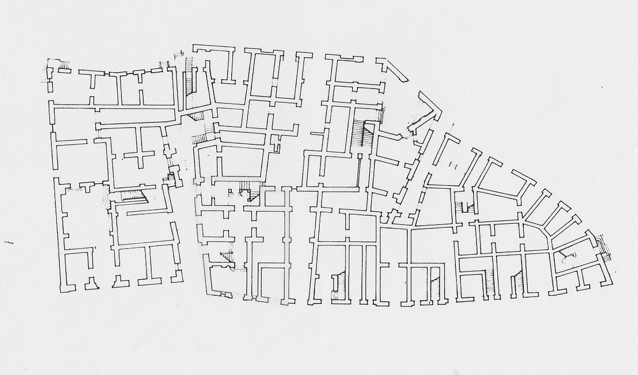 L'edificio si sviluppa su tre livelli oltre il piano terra. La pianta ha impianto regolare, quadrangolare ed è a forma trapezia. La muratura è in pietrame intonacato con bugnato al piano terra. Il tetto è a tre falde raccordate a padiglione con manto di coppi alla romana
