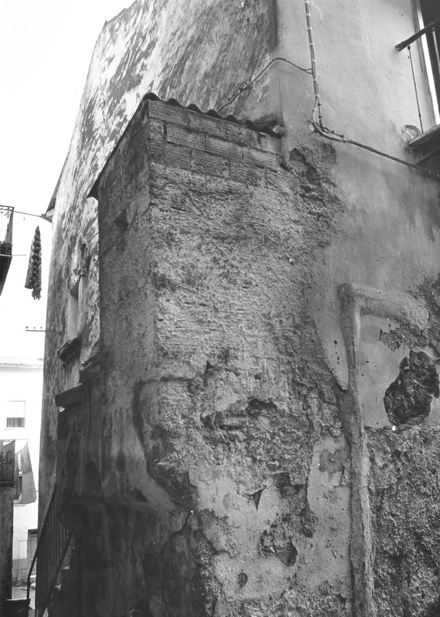L'edificio si sviluppa su tre livelli compreso il piano terra. La pianta ha impianto irregolare ed è di forma trapezia. La muratura, intonacata, è in pietra calcarea giuntata con malta di calce. La copertura è a doppio spiovente con manto in coppi alla romana. All'interno cinque abitazioni