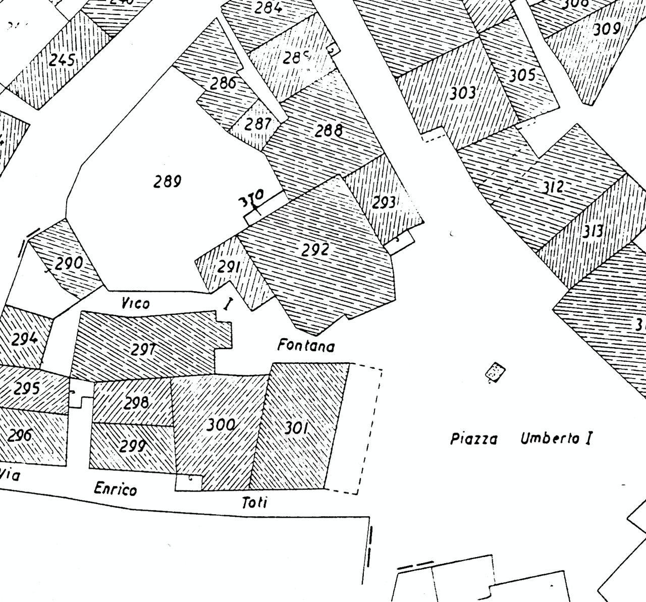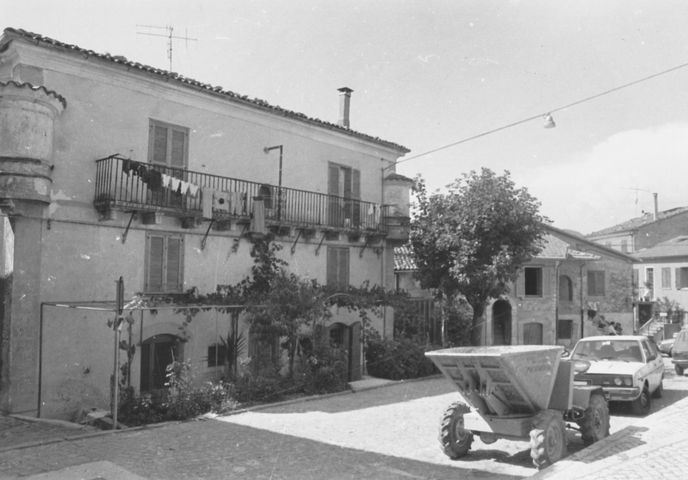 Il palazzo è disposto secondo un orientamento Est-Ovest e presenta un impianto di forma rettangolare con il prospetto principale a quota inferiore rispetto a quella della piazza e si sviluppa su tre livelli di piano. Il portale d'accesso, sull'asse mediano, è ad arco a tutto sesto in pietra lavorata a bugnato. Gli ingressi ai depositi, ai lati, sono ad arco a sesto ribassato in pietra; tra gli ingressi sono presenti piccole finestre. Le aperture ai due piani superiori sono in asse con gli ingressi sottostanti. Al secondo livello la facciata è caratterizzata da un balcone continuo, con ringhiera in ferro, poggiante su reggimensole in pietra sagomata ed, agli spigoli, due volumi circolari-torrette aggettanti poggianti su una mensola in pietra sagomata. A chiusura laterale della facciata principale due cantonali in pietra squadrata e in alto un cornicione lineare poco aggettante
