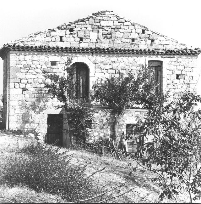 Edificio a pianta rettangolare a due piani con piccolo avancorpo ad un livello. Muratura di pietra a corsi regolari; tetto a capanna con coppi in laterizio, cornicione a piu' file di romanelle. Le aperture del primo piano sono rifinite da elementi di laterizio