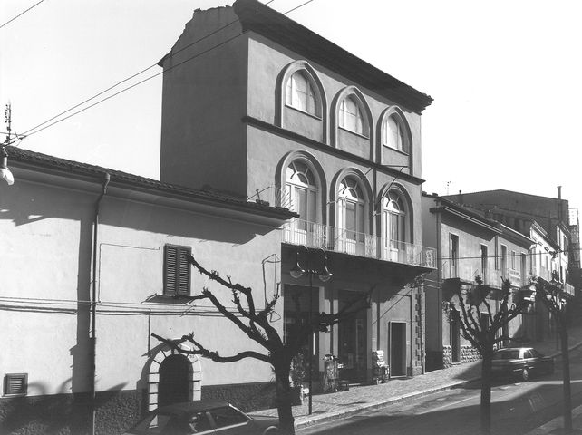Edificio di forma rettangolare a quattro piani, con muratura in pietra intonacata; finestre e balconi con sopraluce ad arco ogivale e a tutto sesto; balconi con ringhiere e mensole in ferro; cornicione aggettante; orizzontamenti in ferro; copertura a due falde con manto in tegole
