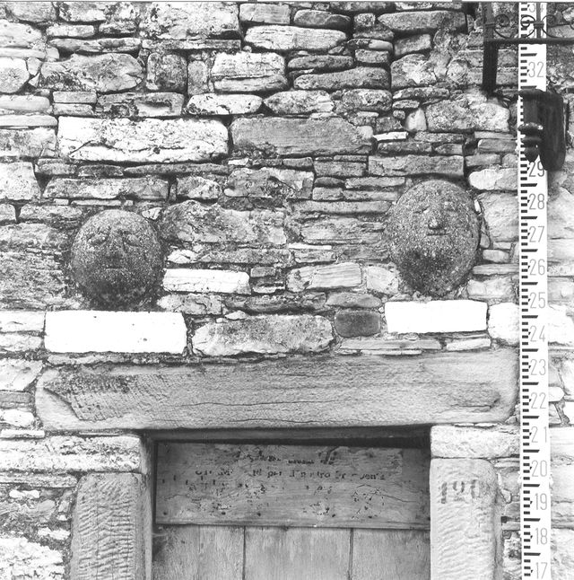 Edificio di pianta rettangolare a trepiani, con ingresso al primo piano tramite scale esterne di accesso; balcone con ringhiere in ferro; orizzontamenti in ferro; copertura a due falde con manto in coppi; frammenti di iscrizioni e testine in pietra sono murate nella parete prospiciente il fronte strada. Nell'immobile una unità collabente ed un deposito