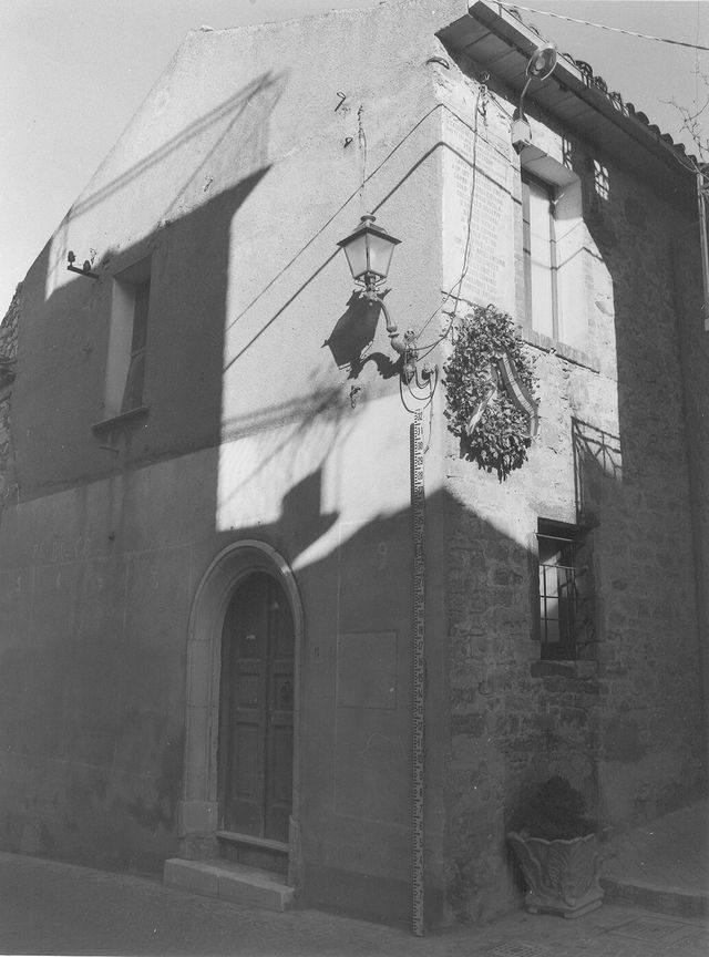 Edificio a pianta rettangolare in muratura portante e con struttura orizzontale in legno e ferro; le pareti perimetrali sono intonacate nel prospetto principale e in pietra locale a faccia vista nel prospetto laterale, nel quale sono incastonati reperti in pietra antichissimi; la copertura e' a due falde con manto in coppi