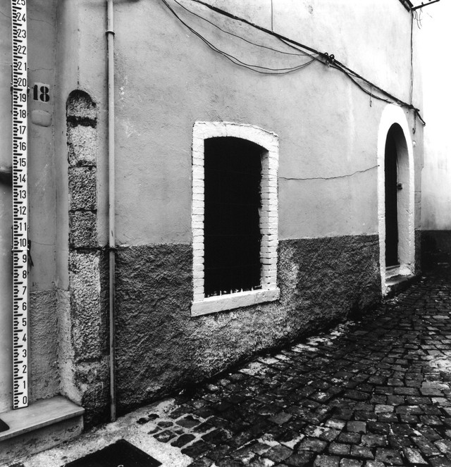 edificio su pianta rettangolare in muratura continua di pietra; intonacato; fronte facciata leggermente curvo; finestra al primo piano con stipiti ed arco a tutto sesto in pietra lavorata; cornicione alla romanella; solai in ferro; copertura con tetto a due falde