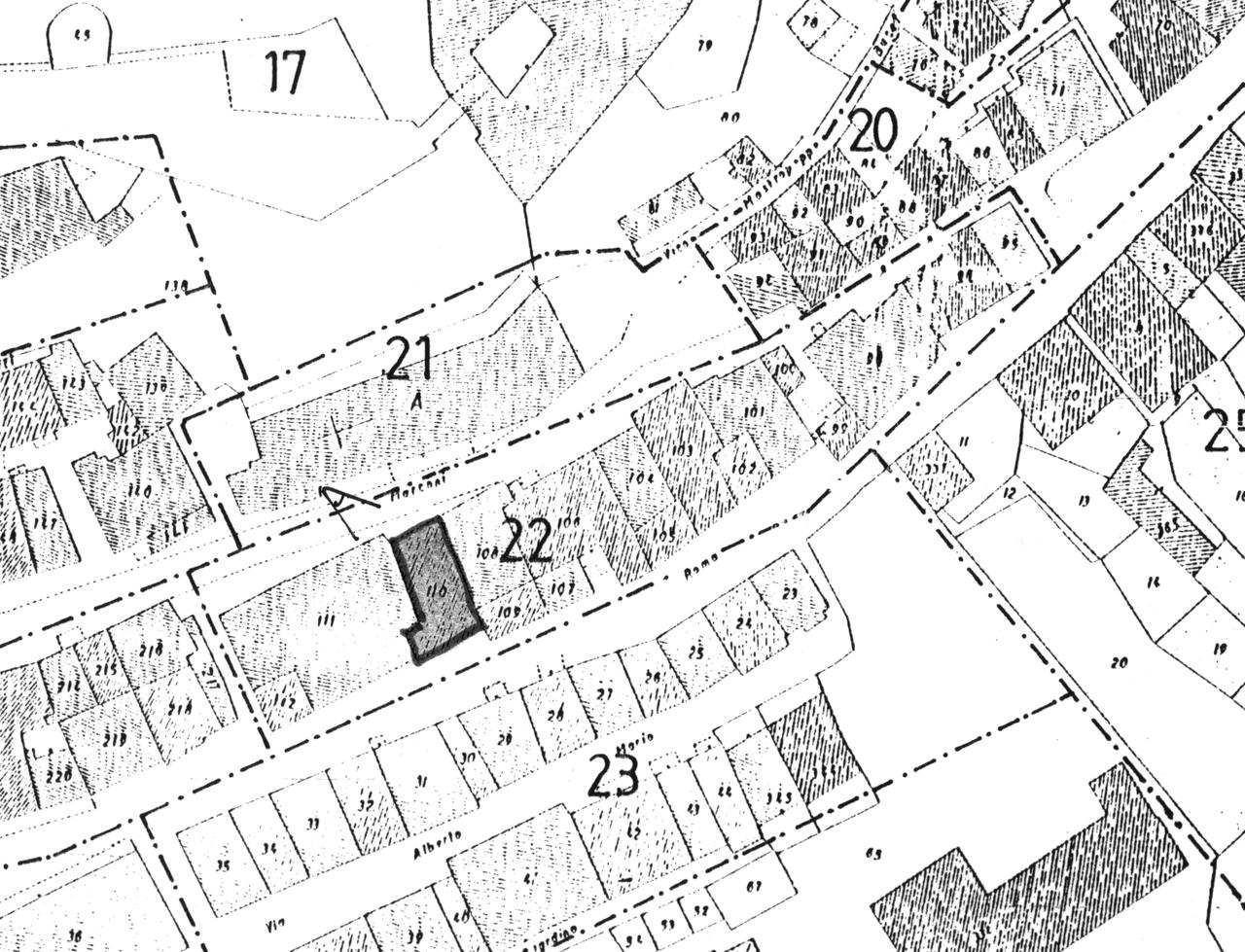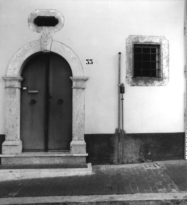 edificio su pianta rettangolare in muratura di pietra intonacata; portale in pietra con arco a tutto sesto; finestra (al lato del suddetto) con cornice in pietra; balconcino con mensola in marmo, reggimensola e ringhiera in ghisa; solai in ferro; cornicione alla romanella; copertura con tetto a due falde