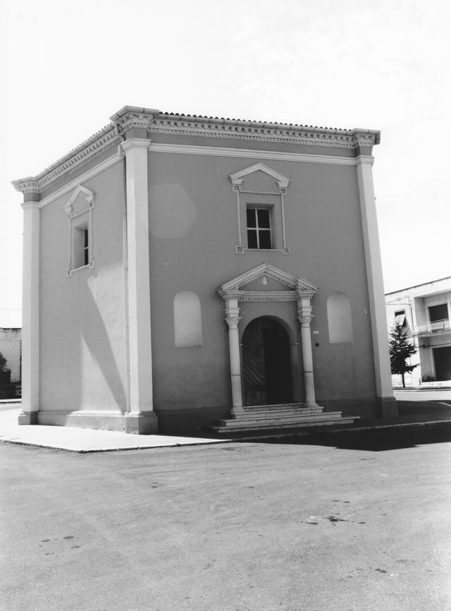 Costruzione a pianta ottagonale con muratura portante in mattoni intonacati. La copertura è a tetto con otto falde triangolari con un ricco cornicione a dentelli. Ai lati paraste con capitelli modanati e portali con timpano sporgente e modanato sorretto da due colonne, quello principale di forma circolare e quello posteriore di forma quadrata. Le finestre sono riquadrate da piccole cornici e architrave sporgente, di forma triangolare, modanato