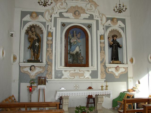 La chiesa ha un impianto planimetrico rettangolare ad unica navata. Il prospetto principale è caratterizzato da un portone rettangolare sormontato da un arco.Il tetto è a capanna con piccola campana tra due muretti di mattoni