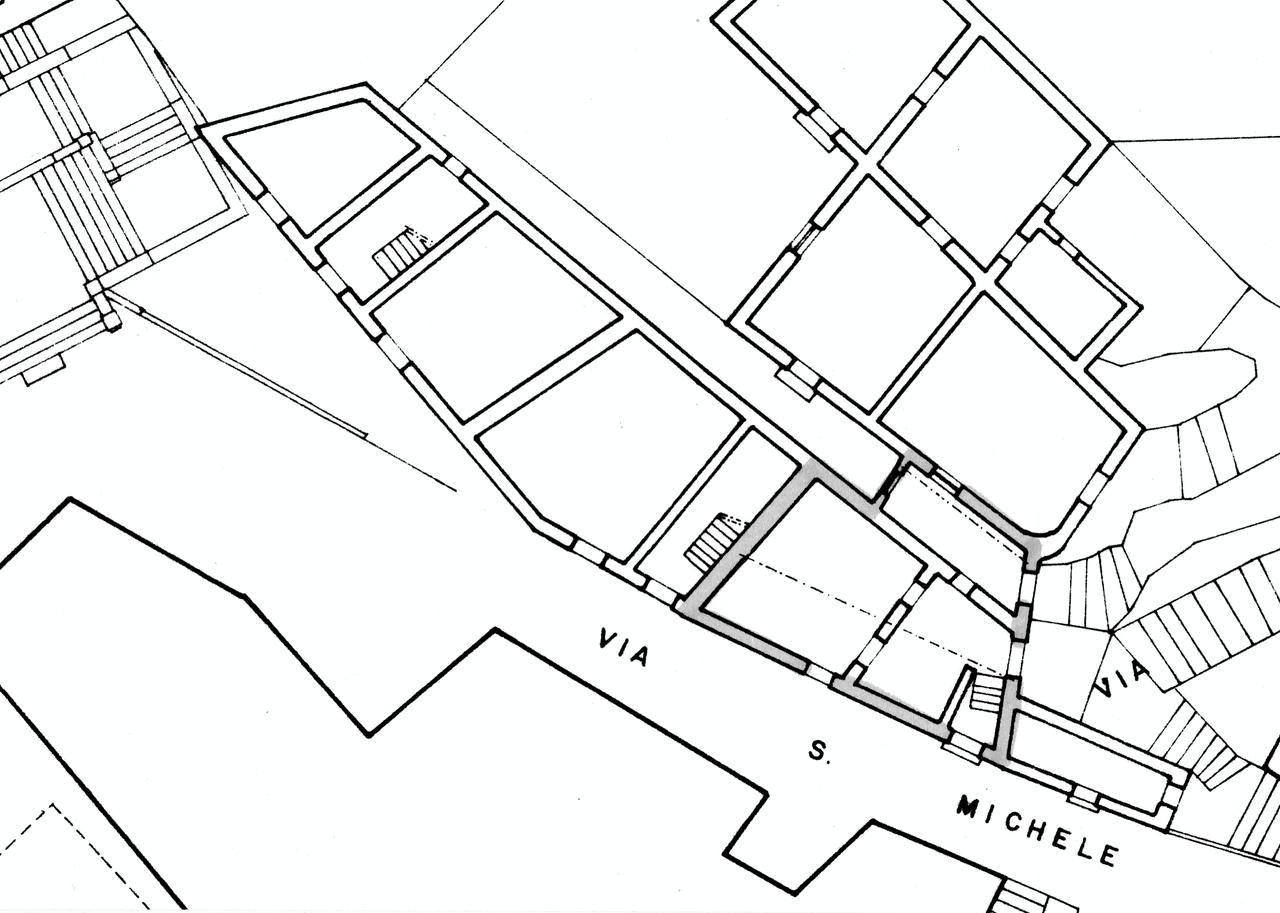 L’edificio è in pianta di forma irregolare si sviluppa su tre livelli di piano, la struttura portante è in muratura di pietrame del tipo a sacco intonacata. Gli ingressi sono a quote diverse e seguono l’andamento delle rampe di via Abramo. La facciata su via San Michele presenta caratteri otto-novecenteschi. La copertura è del tipo a falde ed il coronamento è costituito da un cornicione lineare