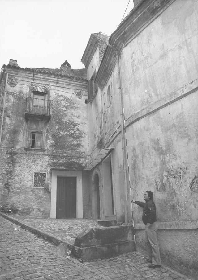 L’edificio in pianta di forma irregolare e si sviluppa su quattro livelli di piano. La struttura portante è in muratura in pietrame del tipo a sacco ed è intonacata. Le tre facciate rivelano caratteri ottocenteschi, la facciata su Via Biondi presenta al piano terra due portali in pietra con archi a tutto sesto. La copertura è del tipo a due falde ed il cornicione è lineare