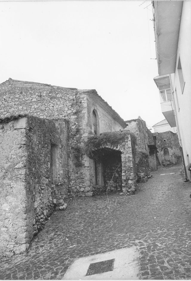 L’edificio è in pianta di forma irregolare e si sviluppa su due livelli di piano ed è composto da due corpi di fabbrica adiacenti, quello a monte, ha un aspetto frammentario caratterizzato da numerose tracce di trasformazioni e di soppressioni di elementi preesistenti; il disimpegno avviene da una scala esterna posta sulla facciata laterale. Il corpo di fabbrica a valle ha una dimensione più modesta ed una configurazione d’insieme più regolare. La facciata allineata all’altro corpo di fabbrica presenta una scala esterna in muratura che conduce ad una porta con arco a sesto ribassato, la seconda facciata presenta una porta con architrave in legno ed al di sopra una piccola finestra . La muratura portante è in pietrame del tipo a sacco intonacata e la copertura è del tipo ad una falda