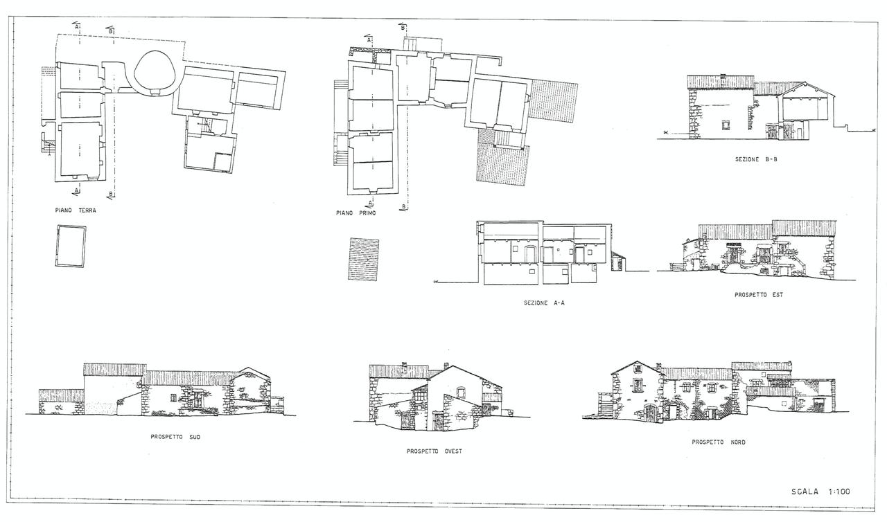 Il complesso edilizio è costituito dall’aggregazione di più unità abitative, in pianta di forma irregolare, la muratura portante è in pietra sbozzata a corsi irregolari, i solai di piano sono in legno e le coperture del tipo a doppia falda con manto in coppi di laterizio. Gli accessi ai piani superiori avvengono da scale esterne in pietra