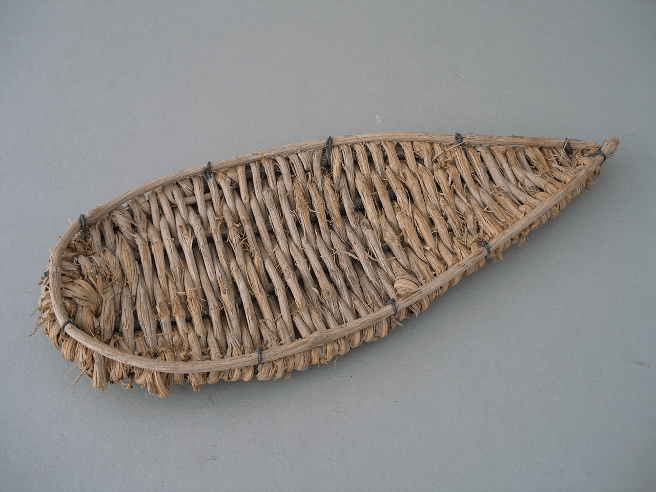 Il graticcio è di vitalba intrecciata, ha la forma di una goccia con ilbordo leggermente rialzato
