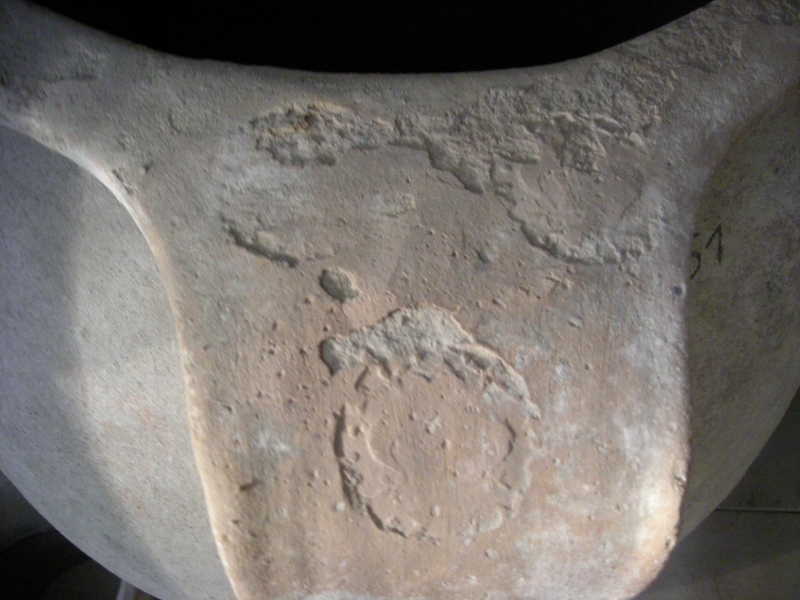 - NOTIZIE STORICO CRITICHE In epoca rinascimentale non era infrequente l'uso di questi recipienti per riempire le strutture murarie e grandi superfici quali volte e soffitti: l'ampia cavità interna garantiva infatti una leggerezza molto maggiore rispetto all'uso di mattoni o pietre (cfr. Francovich, Vannini, 1977 e 1976; Berti, Tongiorgi, 1974). La morfologia dell'orcio ripete quella in auge già nel corso del secolo XIV, ma l'esemplare è da ritenersi quattrocentesco, anche in virtù del confronto con esemplari simili più certamente datati (Francovich, Vannini, 1976, p. 155, tav. I). La necessità di misurare il liquido usando quindi un'unità di misura ufficiale e controllata, è forse la ragione della presenza del giglio fiorentino. Solo gli orci con la misura di capacità stabilita per legge venivano marchiati con quel simbolo dai funzionari dell’Arte degli Oliandoli e Pizzicagnoli, in modo da prevenire comportamenti fraudolenti da parte dei venditori