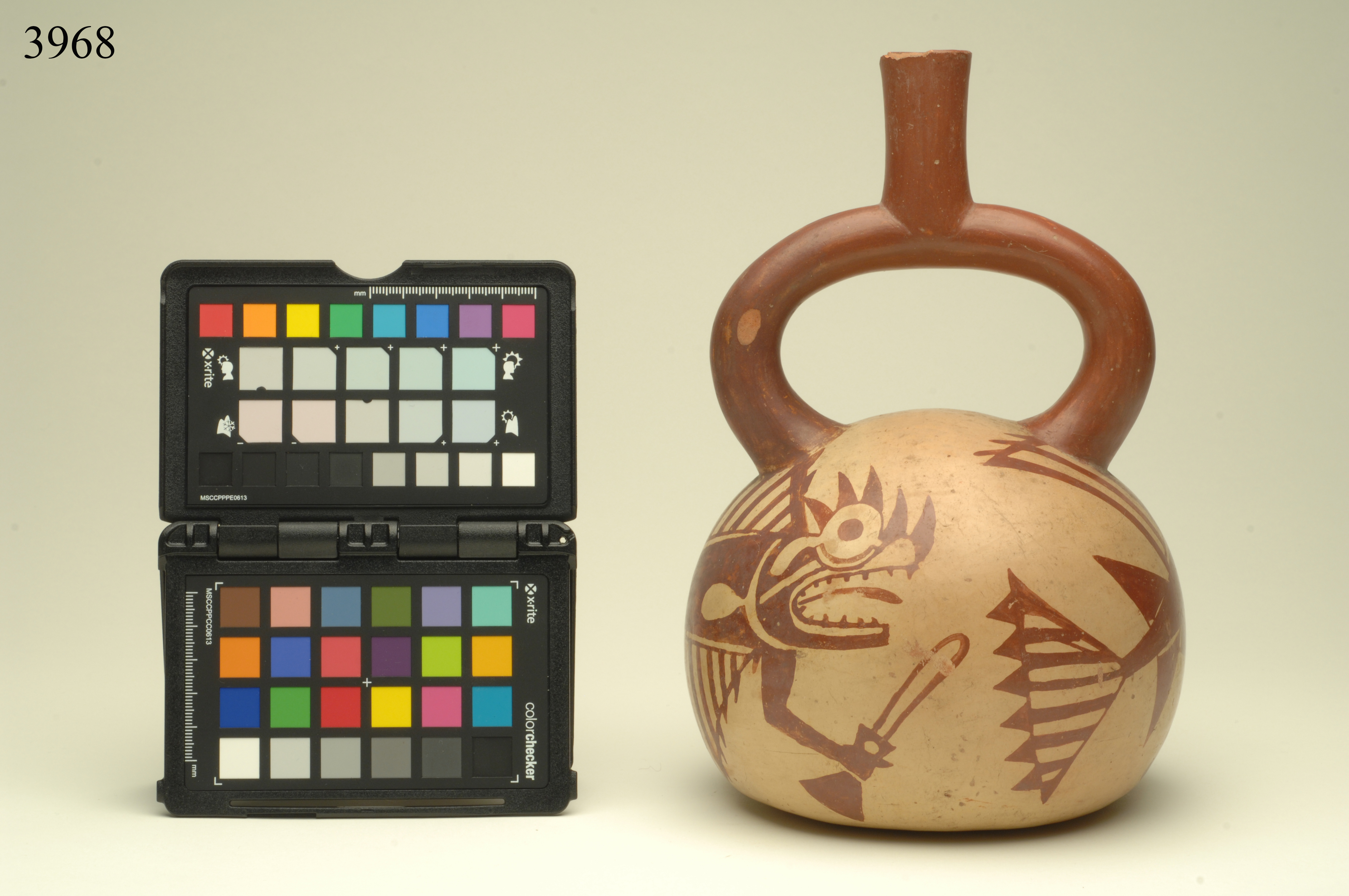 - NOTIZIE STORICO CRITICHE La produzione ceramica Moche è considerata una tra le migliori manifatture del mondo antico. I manufatti sono di alto valore sia da un punto di vista tecnico che iconografico e rappresentativo. I colori utilizzati sono pochi, principalmente il rosso e il bianco-crema. I temi rappresentati variano dalle rappresentazioni umane (vasi-ritratto, personaggi particolari, scene erotiche) alle raffigurazioni di piante e animali. I motivi non costituiscono una rappresentazione della realtà oggettiva ma hanno un significato religioso e simbolico poichè tutto per i Moche è parte della religione