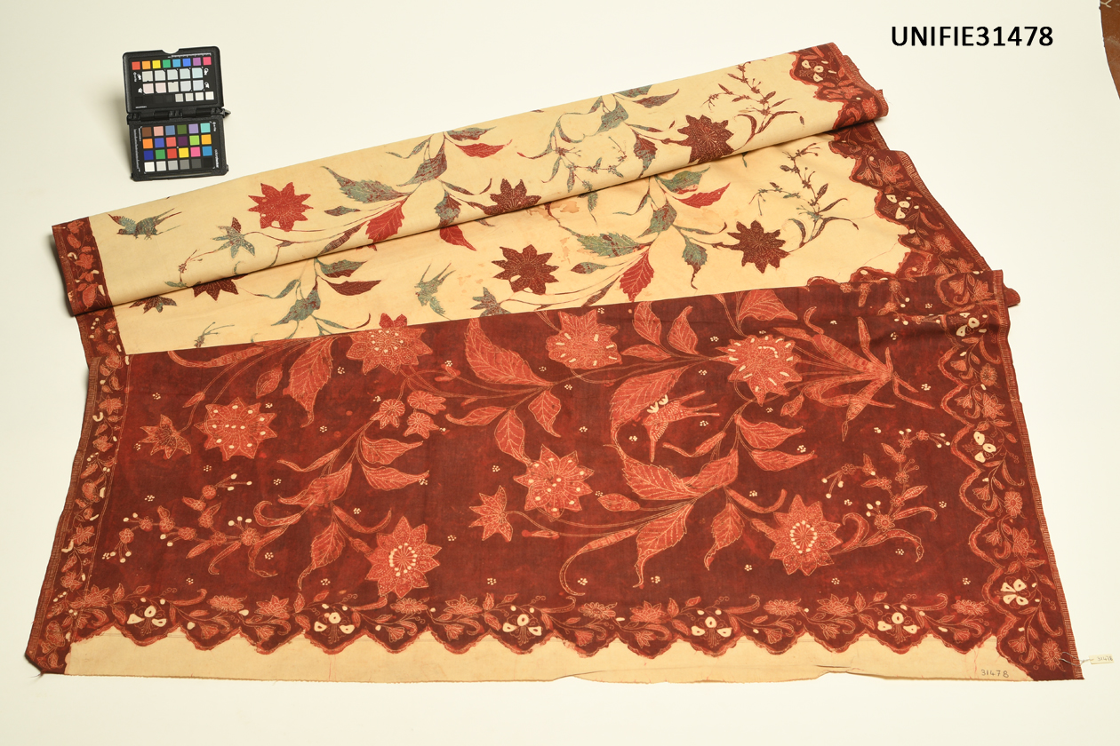 - NOTIZIE STORICO CRITICHE Un tessuto di simile impostazione decorativa si trova nel Queen Sirikit Museum of Textile di Bangkok, (inv. Bureau of the Royal Household, n. 182), attribuito a manifattura di Pekalongan, zona costiera di Giava. Lo stile della decorazione mostra evidenti influssi dell'ornato europeo di epoca Vittoriana, già venato di stilemi Art Nouveau