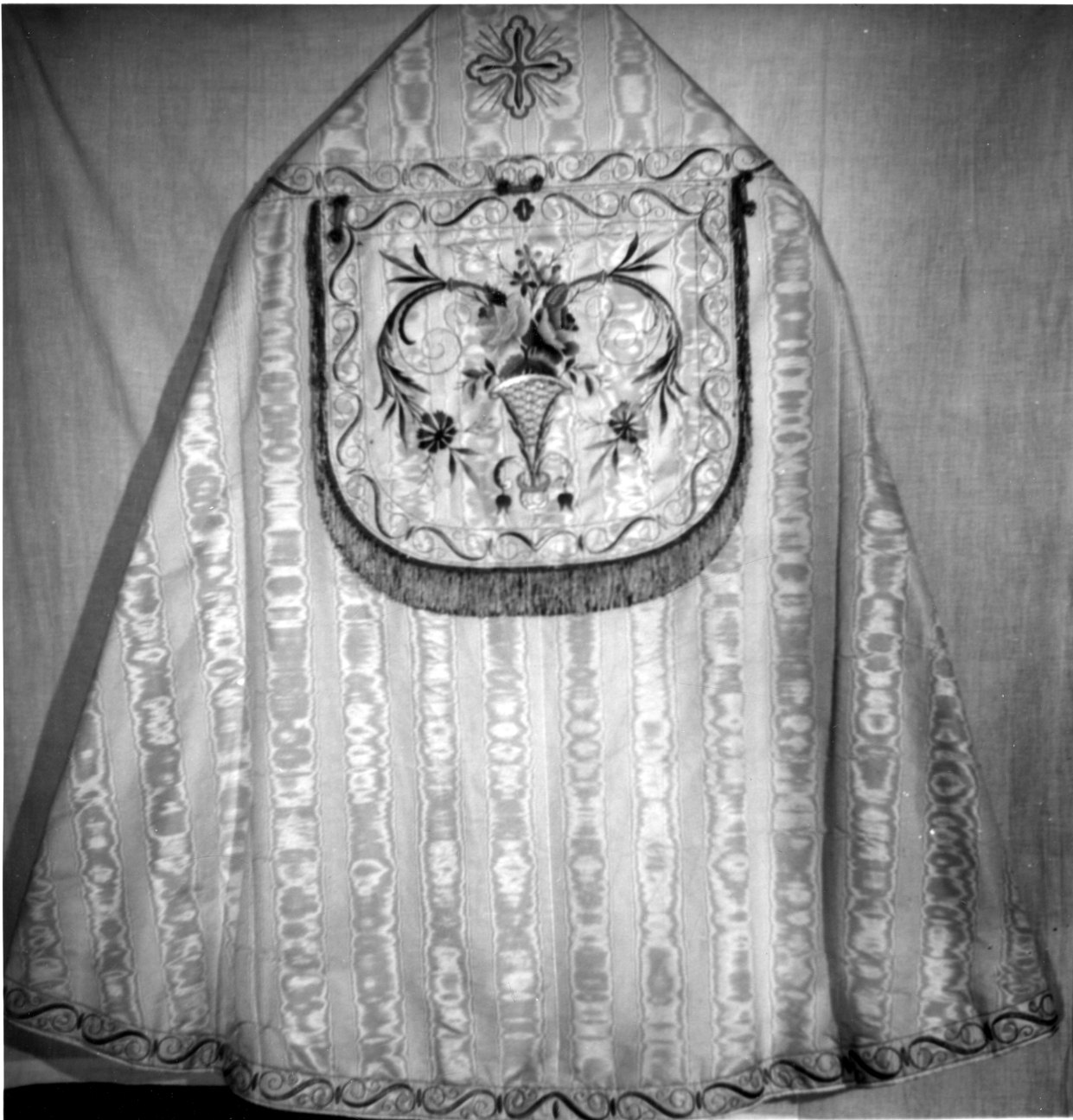 - NOTIZIE STORICO CRITICHE Si rintraccia il nome dell'esecutore dei ricami dalla firma apposta su un paliotto conservato nella stessa Confraternita. Non è possibile avere ulteriori notizie documentarie. Il tipo di disegno fa datare il lavoro verso la metà del secolo scorso. L'abilità dell'esecuzione e la varietà dei punti adoperati ci segnala un artigiano di ottima levatura