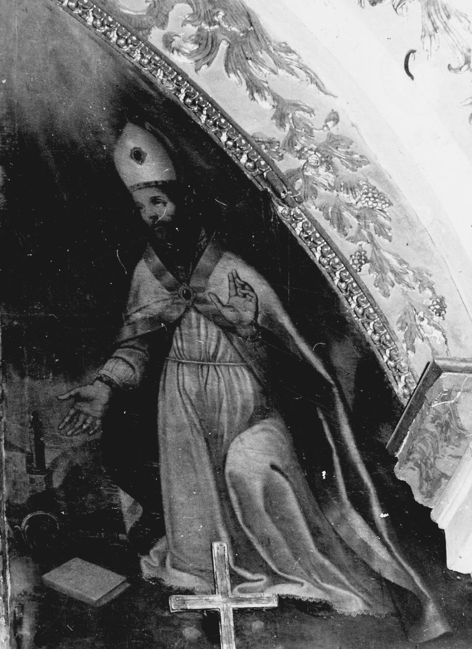 A destra del dipinto raffigurante l'Annunciazione una tela di forma triangolare e senza cornice rappresenta Sant'Ignazio