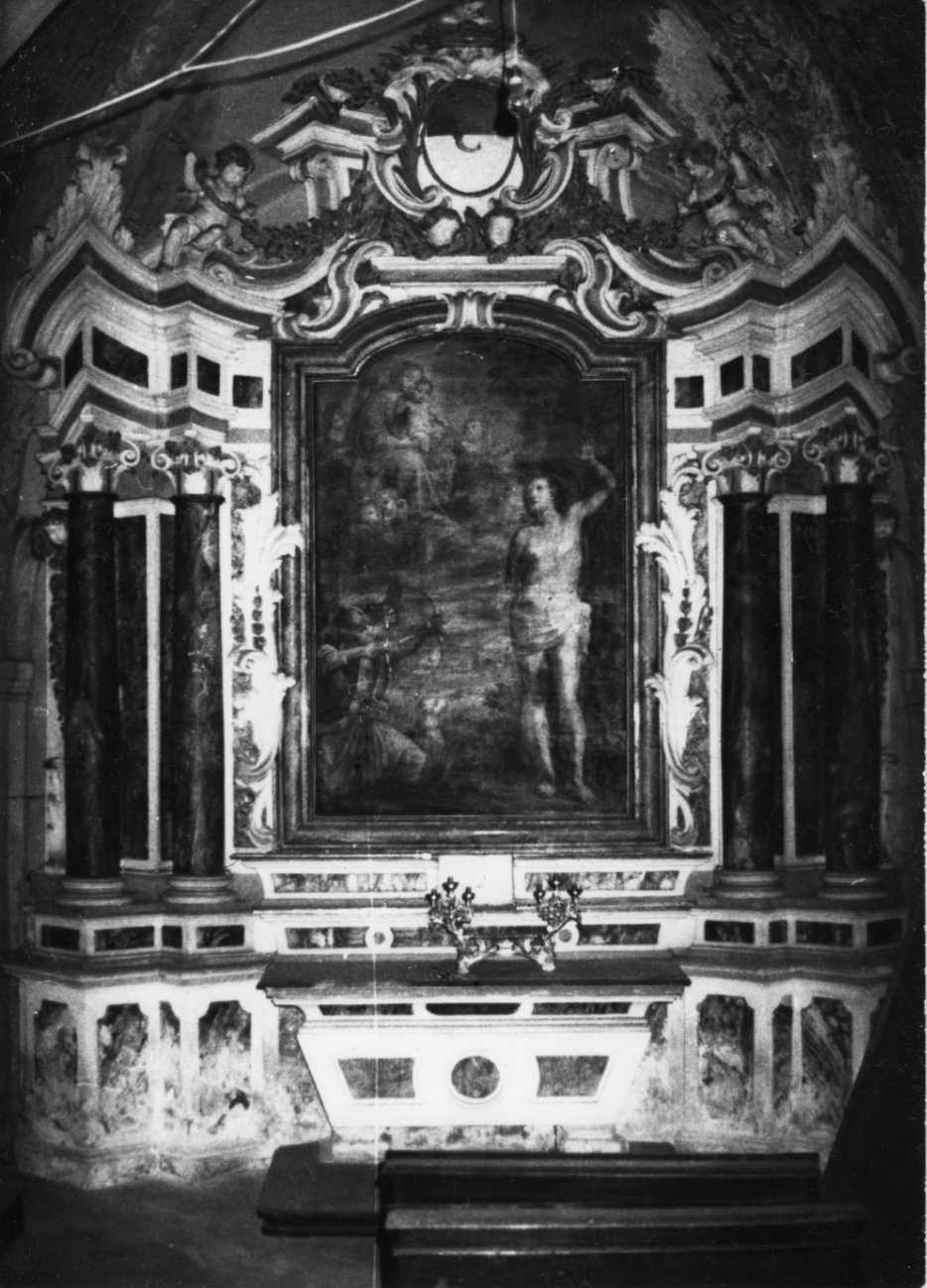 - NOTIZIE STORICO CRITICHE L'altare fu dedicato, l'anno della pestilenza del 1630, a san Sebastiano per volontà del comune. In tale occasione, venne commissionata al pittore Giovanni Antonio Molineri una pala dedicata al santo del quale nella chiesa già si conservava un affresco votivo. La pala venne regolarmente eseguita e l'altare allestito, tanto che nel quadro votivo della pestilenza eseguito l'anno seguente dal Della Rovere e ora conservato nel comune di Carmagnola, essi vennero già rappresentati. Il degrado della pala molineriana portò ad una sua sostituzione nel 1740 con una copia eseguita da Lorenzo Pelleri. Tuttavia, l'altare non sembra essere stato rielaborato in tale circostanza
