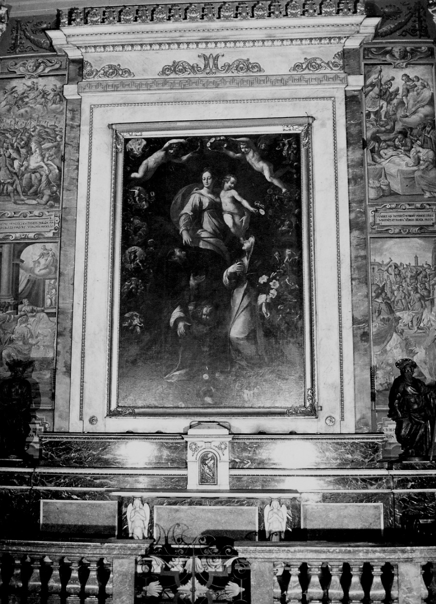 - NOTIZIE STORICO CRITICHE Le fonti bibliografiche sostengono che l'altare attuale è stato costruito nel 1847 dai marmisti Rossi e Belloni, su disegno dell'architetto Paolo Rivolta (Risveglio, settembre 1928; G. BARLASSINA, A. PICCONI, Le chiese di Novara, Novara 1933, p. 124; Novara Sacra, Novara 1933, p. 247; A. RIZZI, Conoscere Novara entro i baluardi, Novara 1947, p. 34) in sostituzione dell'antico "di legno verniciato in oro" (Milano, Archivio di Stato, cartella 1940, Fondo Amministrazione Fondi di Religine, Inventario 11 luglio 1805), oramai "sdrucito e quasi irregolare" (Novara, Archivio del Sacro monte di Pietà, cart. 71, Culto. Chiesa di S. Pietro al Rosario. Propriettà - Patronato - Cappelle - Consorzi). Dalla documentgazione d'archivio ottocentesca conservata presso il Monte di Pietà, relativo ad un disegno presentao dalla Fabbriceria il 7 novembre 1832 ed "a spese fatte per l'altare in marmo" nel 1834, si deduce che probabilmente la sostituzione dell'antico altare con l'attuale neoclassico ebbe vicende complesse (Novara, Archivio del Sacro monte di Pietà, Cart. 73, Culto. Chiesa di S. Pietro al Rosario, opere diverse)