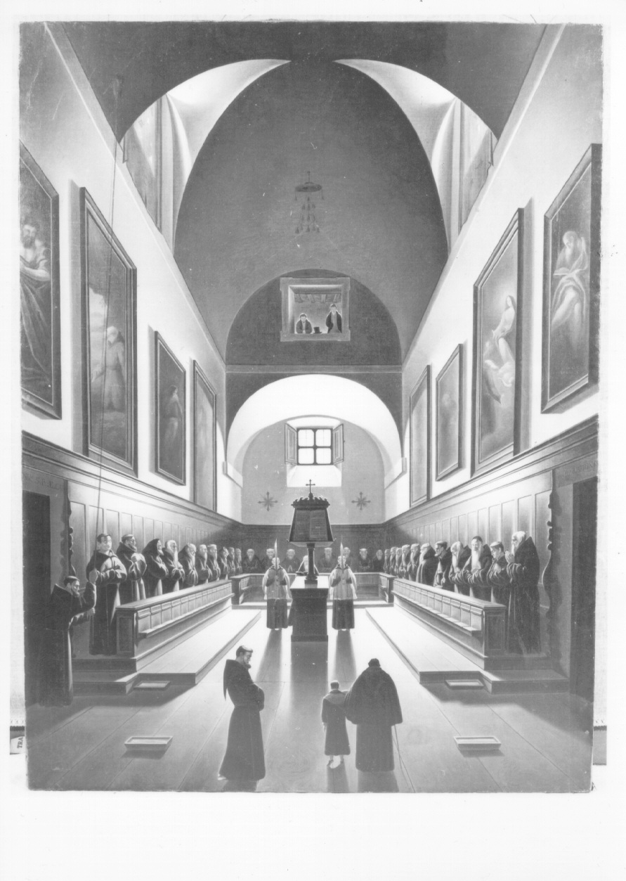 Interno del coro dei Cappuccini di Roma. interno della chiesa dei Cappuccini a Roma