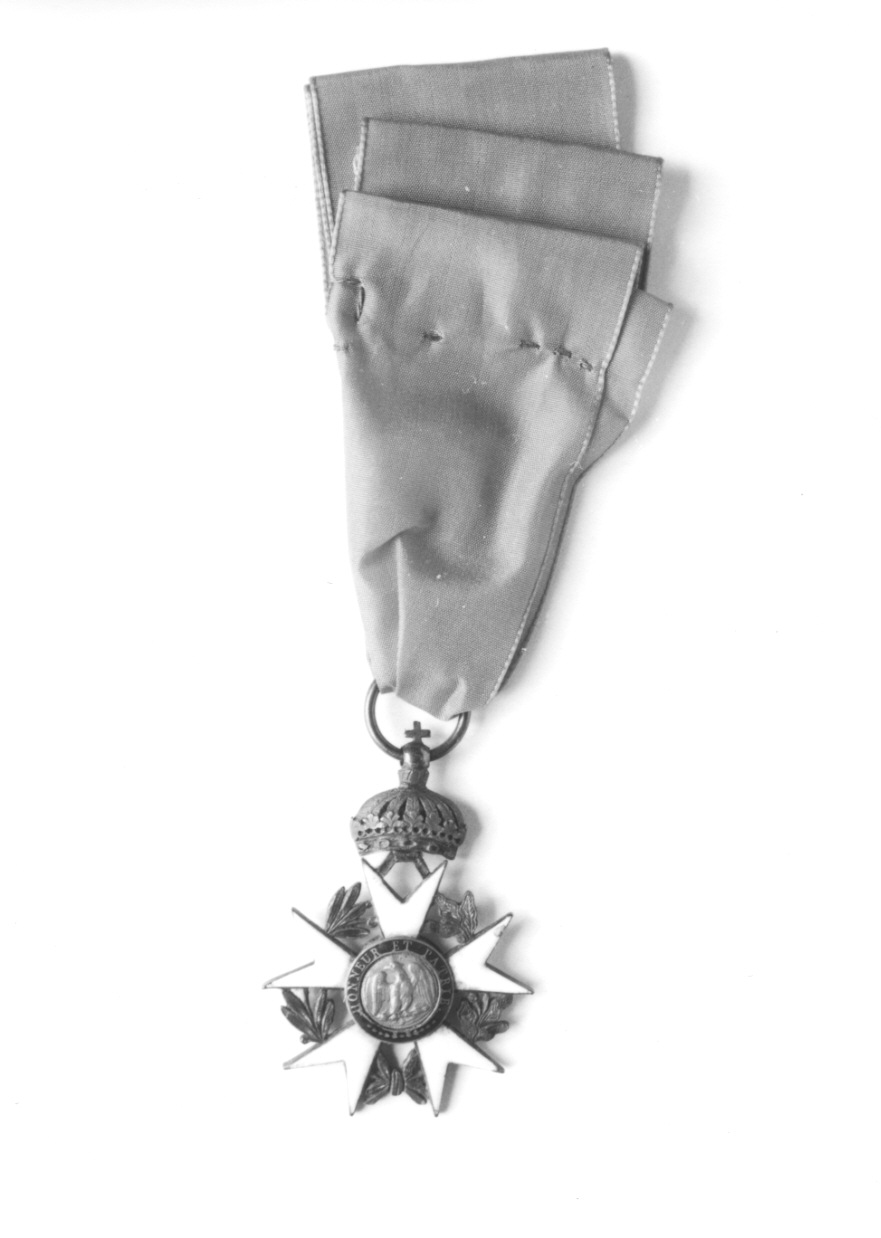 Stella a bracci biforcuti, smaltati di bianco, con al centro l'aquila imperiale entro corona circolare smaltata di blu. Tra i bracci corre la corona di alloro e di quercia. Una corona con globo e croce apicale funge da raccordo all'anello di sospensione