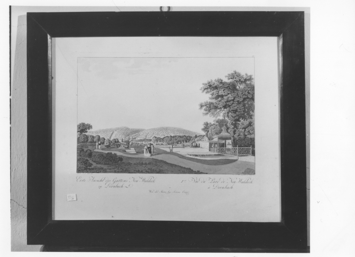 - ISCRIZIONI in basso a sinistra - Erste Ansicht des Gartens Neu Waldeck/ zu Dornbach - corsivo - a penna - francese