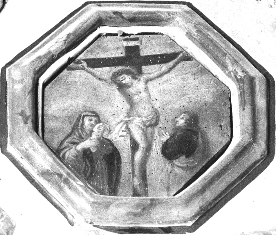 Soggetti sacri. Personaggi: Cristo; Madonna; San Giovanni Evangelista. Abbigliamento. Oggetti: croce