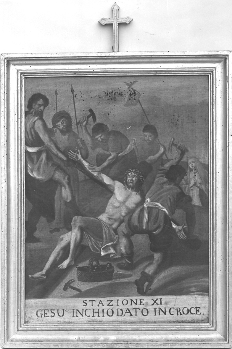 - ISCRIZIONI in basso - STAZIONE XI/ GESU'INCHIODATO IN CROCE - lettere capitali - a pennello -