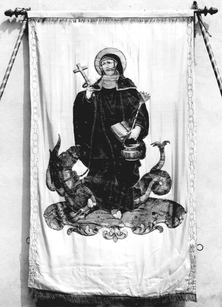 Soggetti sacri. Personaggi: Santa Marta. Attributi: (Santa Marta) aspersorio; secchiello per aspersorio; drago. Oggetti: croce