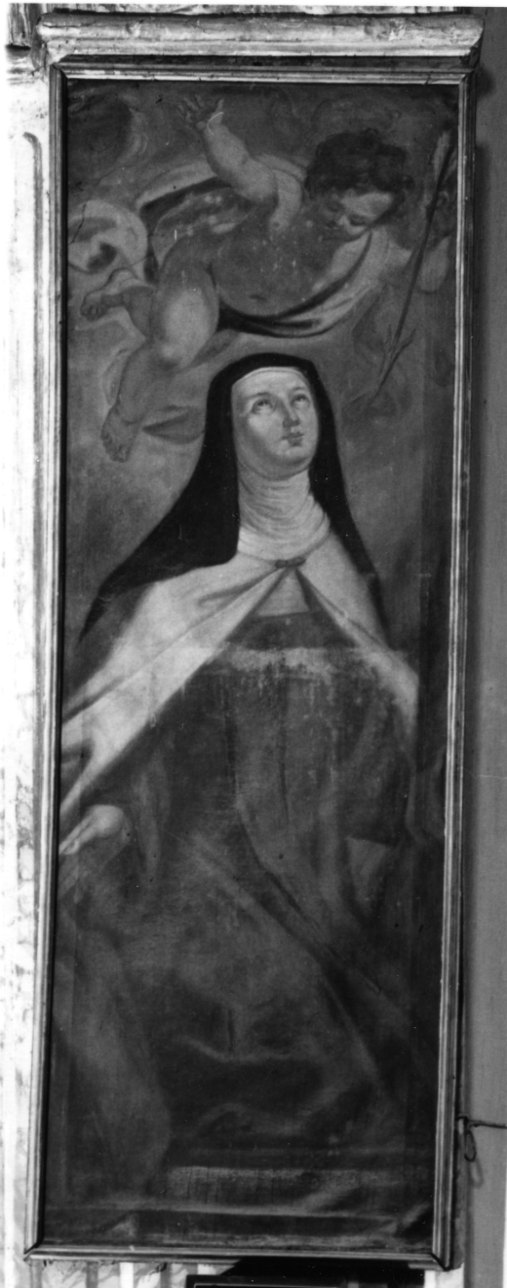 Personaggi: Santa Teresa. Attributi: (Santa Teresa) angelo; freccia. Abbigliamento religioso