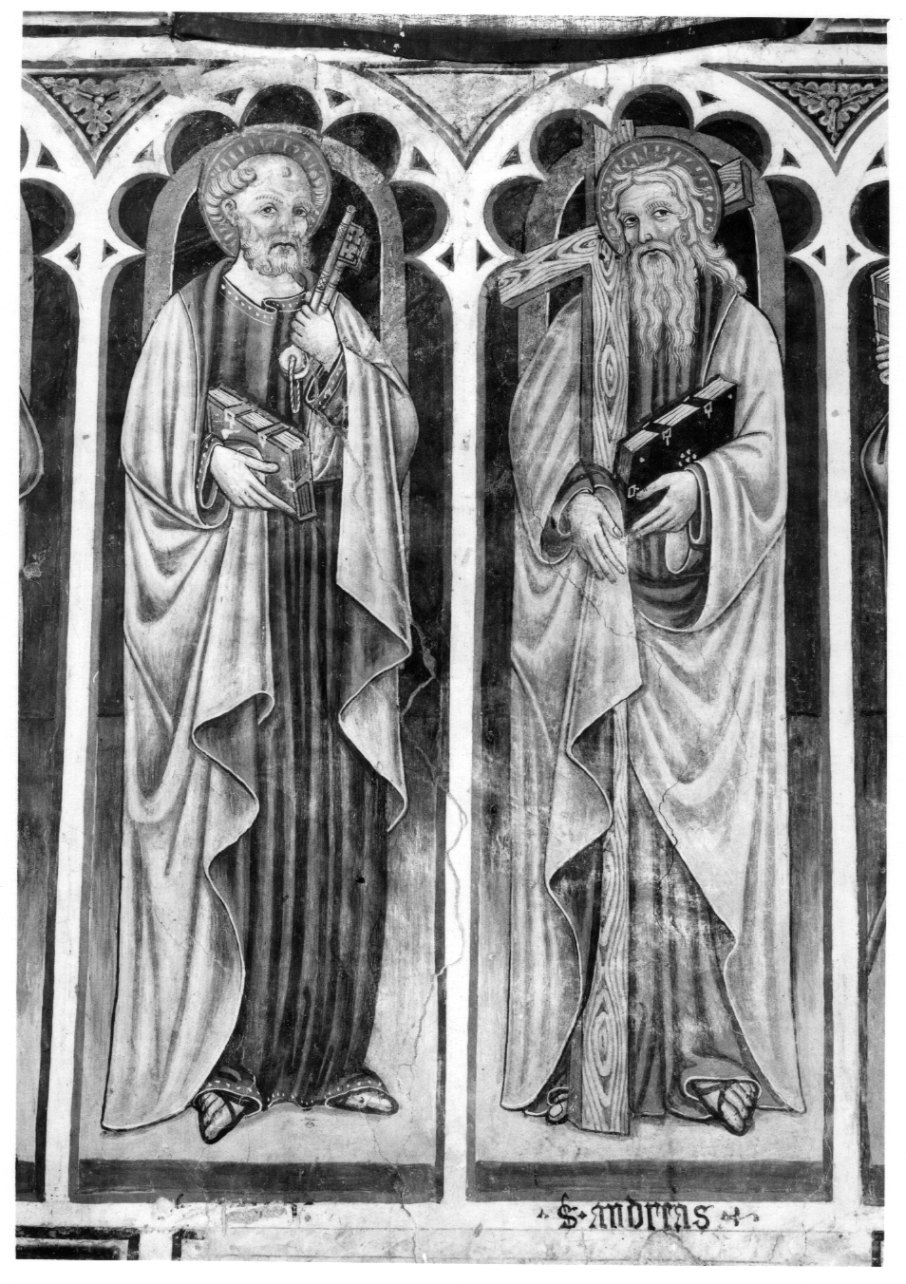 - ISCRIZIONI ai piedi degli apostoli - s andrea - caratteri gotici - a pennello - latino