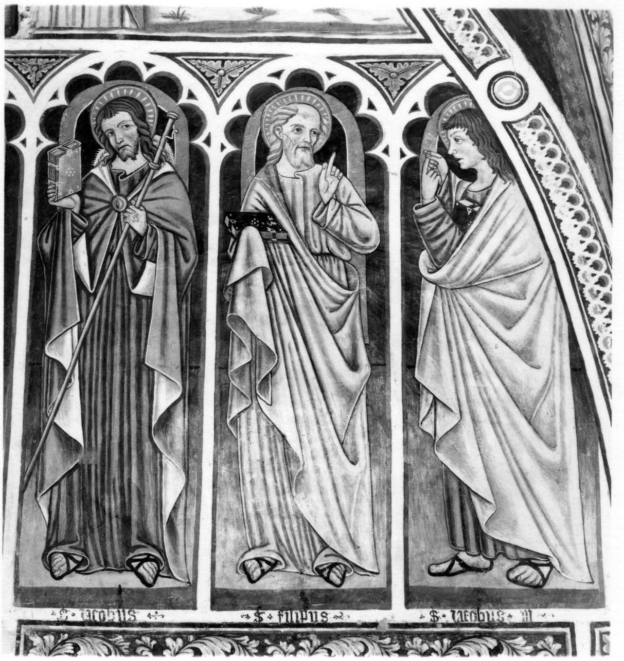 - ISCRIZIONI ai piedi degli apostoli - s jacobus s filipus s jacobus II - caratteri gotici - a pennello - latino
