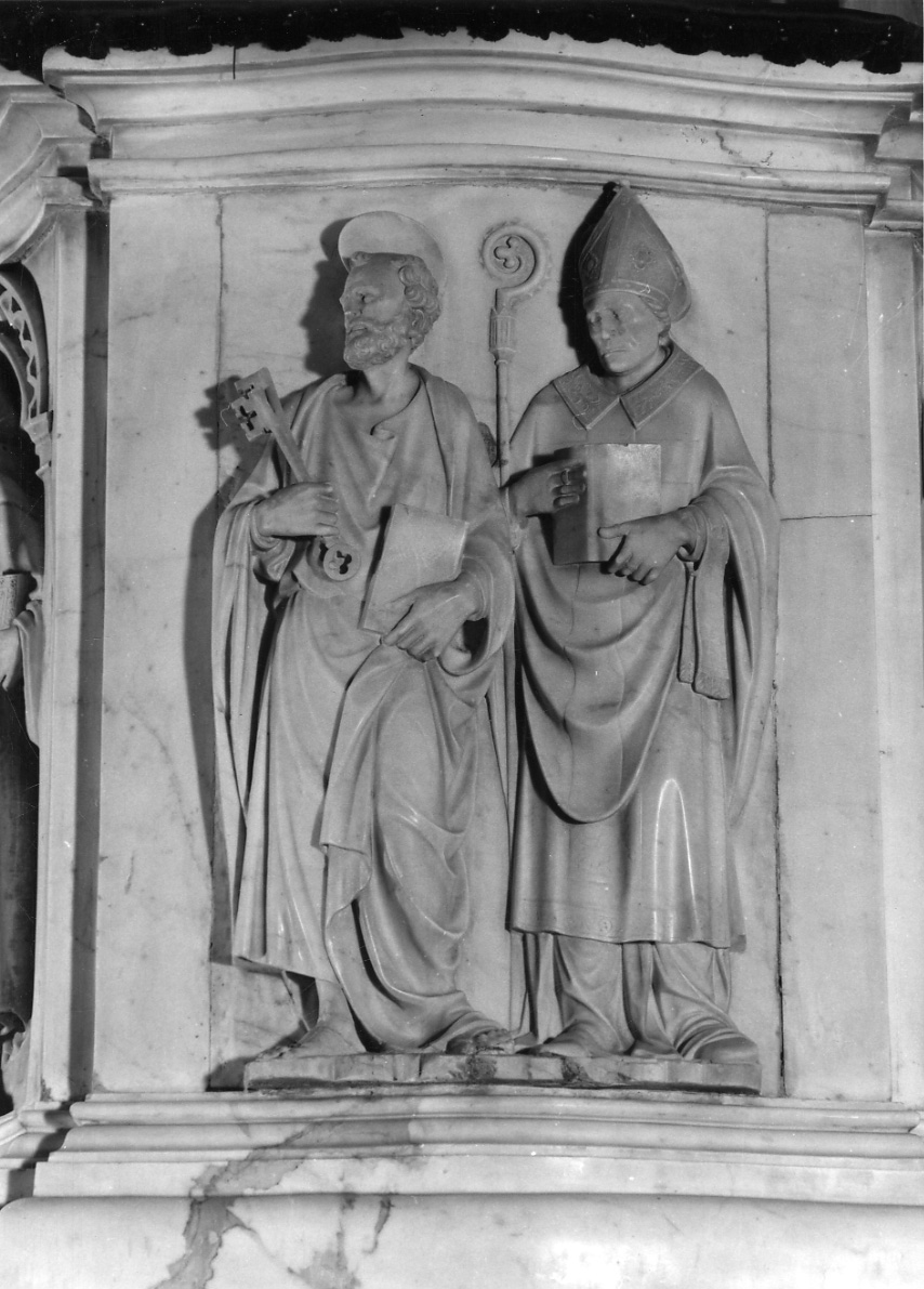 Soggetti sacri. Personaggi: San Pietro; San Guido. Abbigliamento. Abbigliamento religioso: (San Guido) abito vescovile. Attributi: (San Pietro) chiavi; libro. Attributi: (San Guido) libro