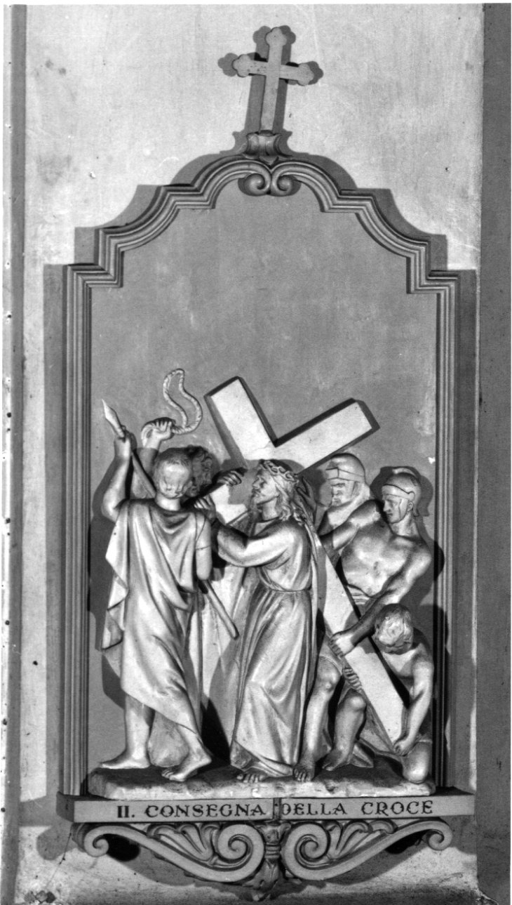 - ISCRIZIONI sulla cornice in basso - II. LA CONSEGNA DELLA CROCE - Prinotti - lettere capitali - a incisione -