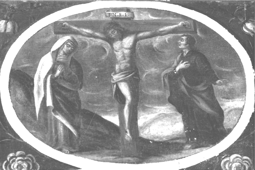 Personaggi: Gesù Cristo; Madonna; San Giovanni Evangelista. Abbigliamento. Paesaggi