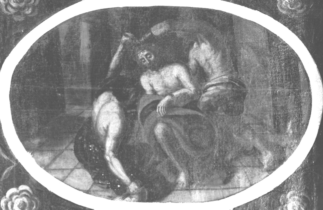 Personaggi: Gesù Cristo. Figure: carnefici. Abbigliamento. Interno. Oggetti: pinze. Simboli della passione: corona di spine
