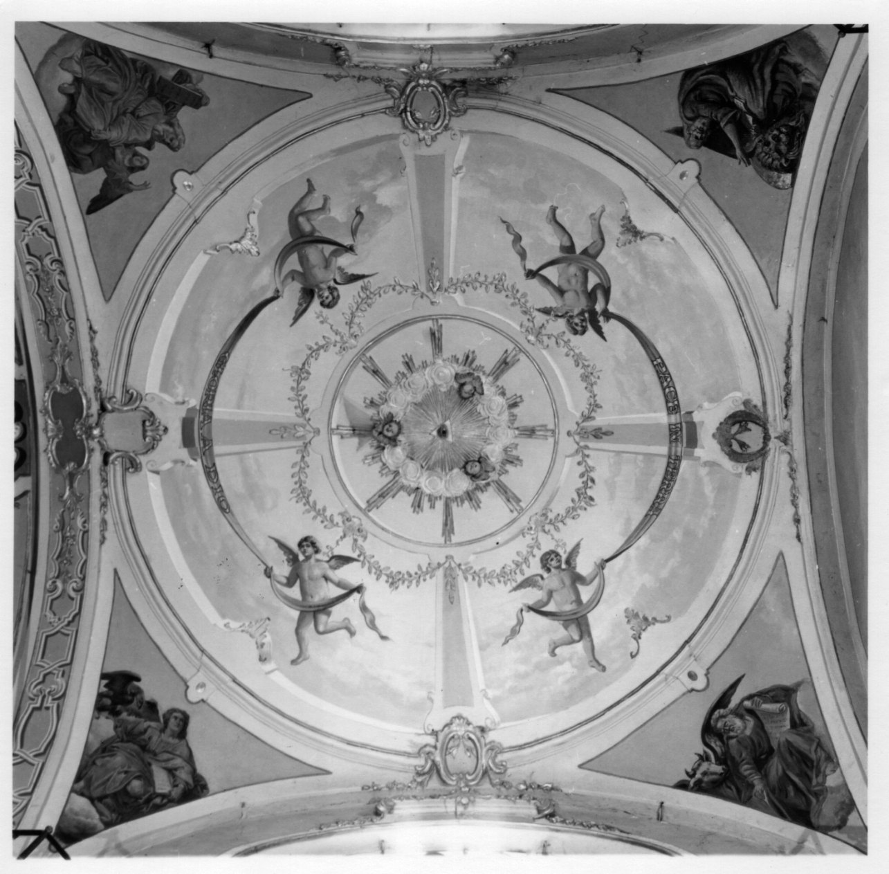 simbolo tripartito della Trinità e angeli reggicartiglio