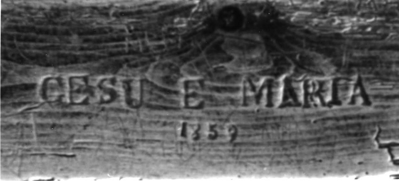 - ISCRIZIONI al centro del poggiamani - GESU' E MARIA/ 1859 - lettere capitali - a solchi -