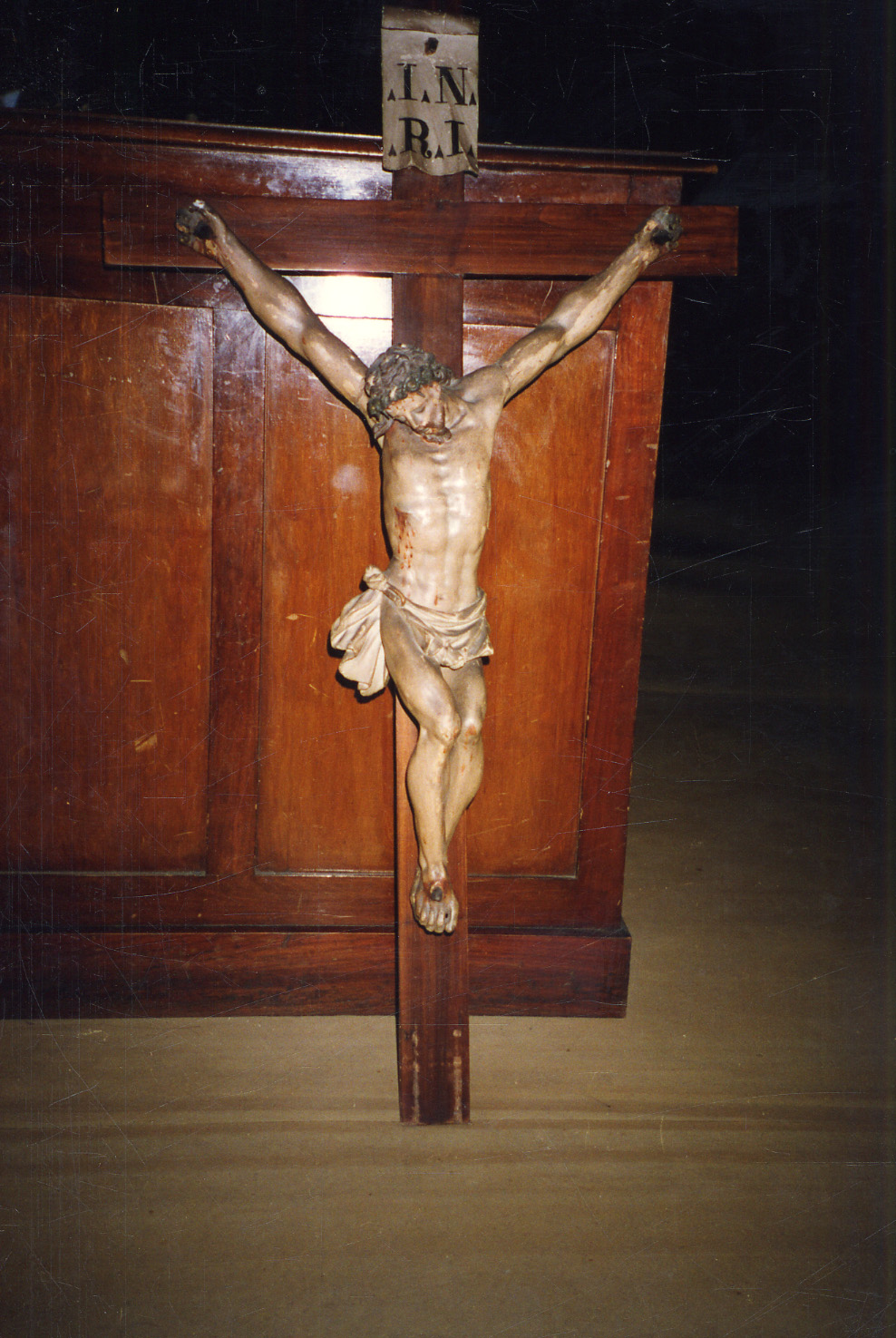 - ISCRIZIONI sul cartiglio in alto, sul montante - I. N. R. I - lettere capitali - a pennello - latino