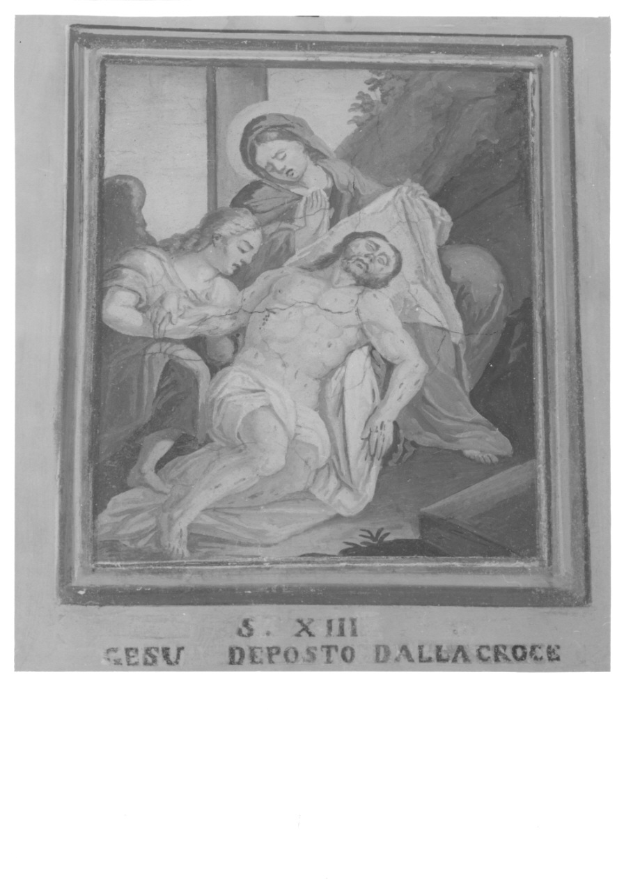- ISCRIZIONI in basso, esternamente alla cornice - S. XIII / GESU DEPOSTO DALLA CROCE - lettere capitali - a pennello -