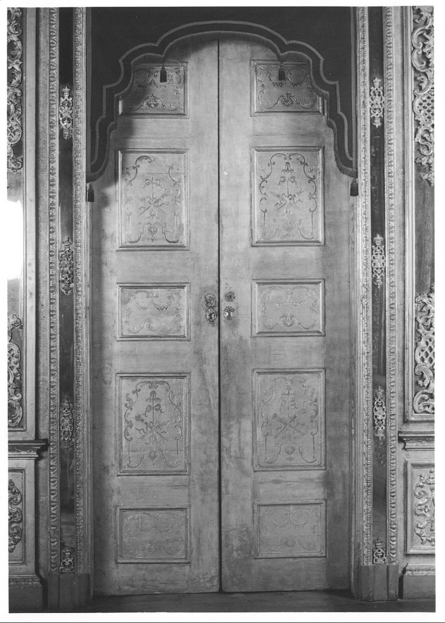 - NOTIZIE STORICO CRITICHE La porta presenta motivi decorativi analoghi a quelli presenti sulla porta della sala delle stagioni e sugli scuri di finestra delle due sale, per cui si presume che entrambi gli infissi siano stati realizzati all'incirca negli stessi anni
