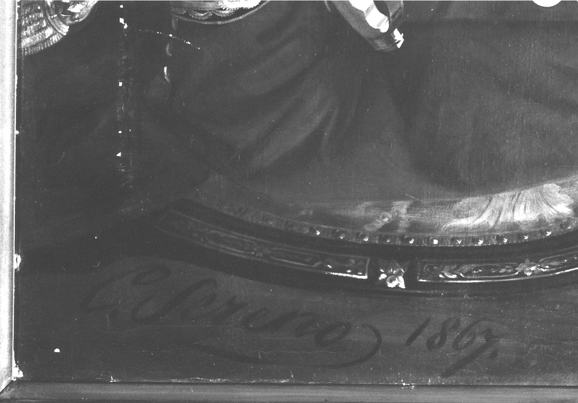 - ISCRIZIONI retro cornice/ in basso/ su etichetta rett. metal., in nero - Provincia di/ Torino/ Invent. N. 133792 - Sereno C - corsivo - a impressione -