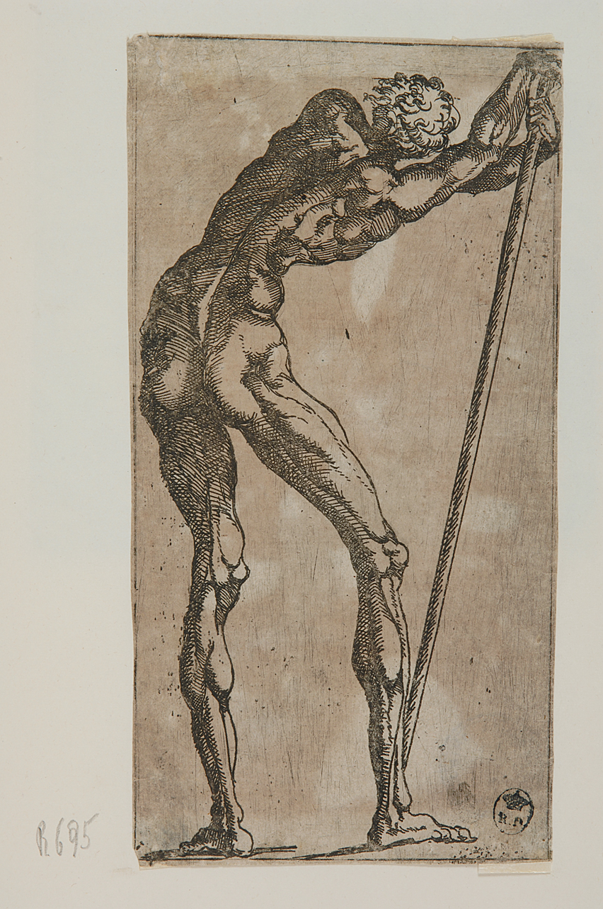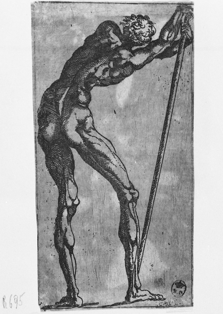 Figure: figura maschile di tergo. Armi: picca