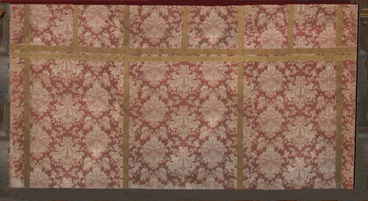 Paliotto realizzato in seta damscata di color panna su fondo amaranto