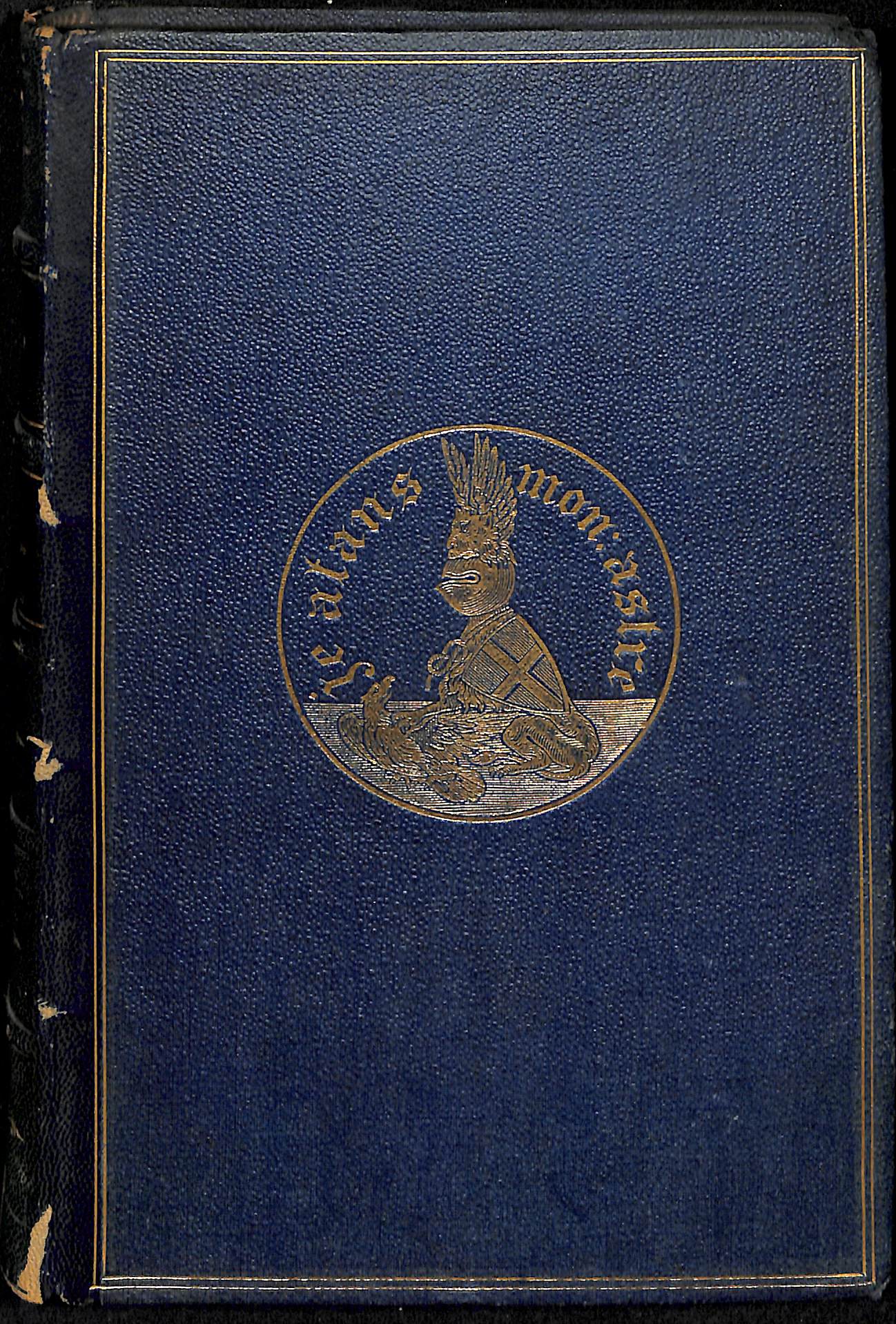 legatura rigida in mezza pelle e tela su supporto in cartone, dorata ai piatti con cornice di doppio filetto; al centro del piatto superiore motto. Dorso in pelle a cinque finti nervi rilevati e sottolineati; caselle decorate in oro; titolo e autore impressi in oro in seconda e terza casella. Tagli rossi. Guardie e controguardie in carta finta seta marezzata