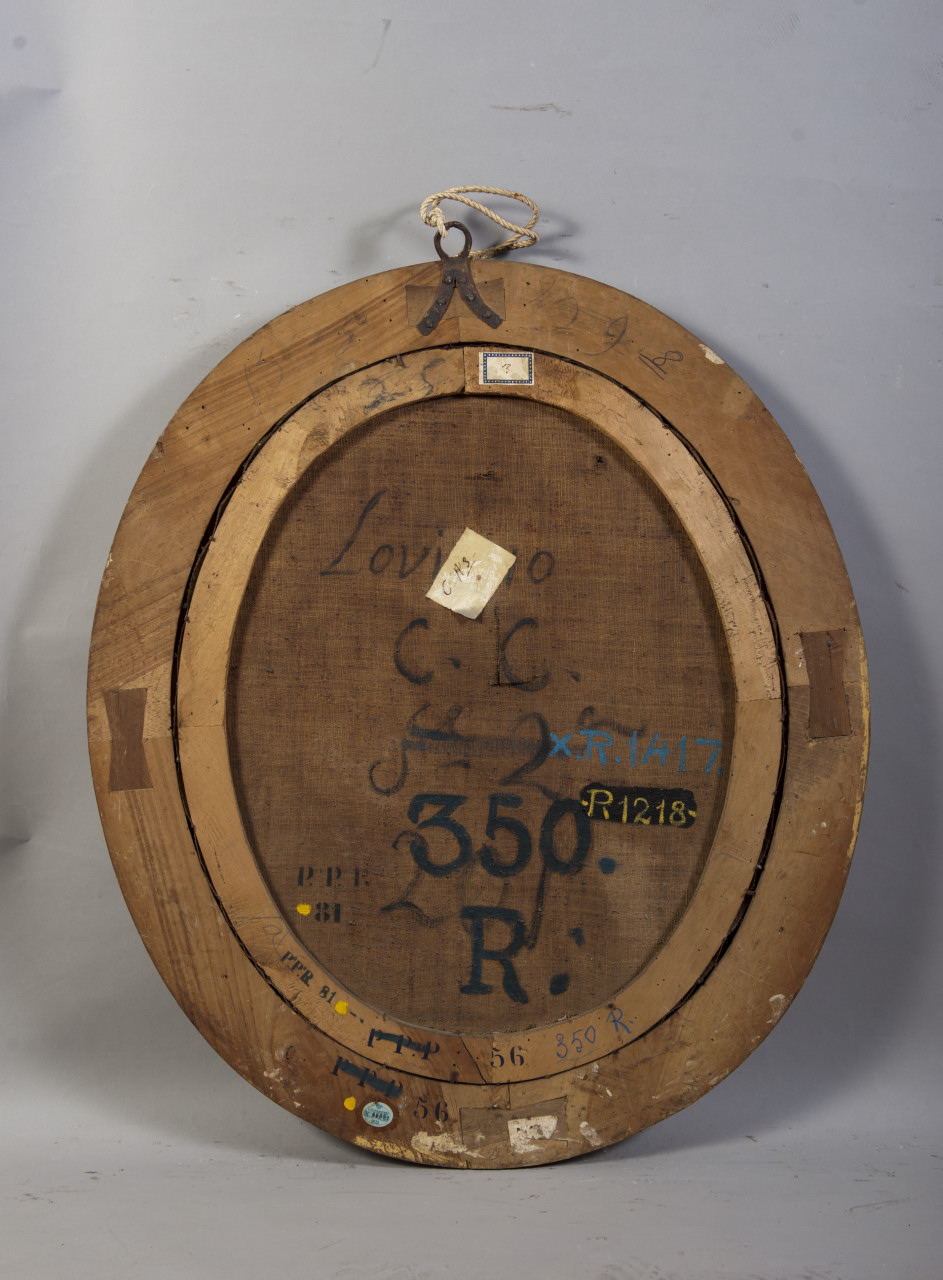 • NOTIZIE STORICO CRITICHE La tela fa parte di un ciclo, rappresentante i sovrani dei principali regni europei di età medievale e moderna. Le opere, pur rispondendo a modelli iconografici differenti, corrispondono per formato, ovale, tipologia della cornice, e modalità di realizzazione dell’iscrizione dipinta per riconoscere l’effigiato. Sino al terzo quarto del XIX secolo si trovavano presso il Reale Castello di Moncalieri.(Archivio di Stato di Torino, Sezioni Riunite, Casa di Sua Maestà, Inventari, Moncalieri, 12922, 25 luglio 1879). Da un punto di vista stilistico e competitivo i dipinti si possono ricondurre alla seconda metà del XVIII secolo. Si tratta forse di derivazioni da prototipi incisori o da cicli conservati in altre collezioni principesche da individuarsi. L’opera rappresenta Luigi X di Francia (Parigi, 1289 – Castello di Vincennes, 1316), appartenente alla dinastia dei Capetingi, incoronato nel 1315