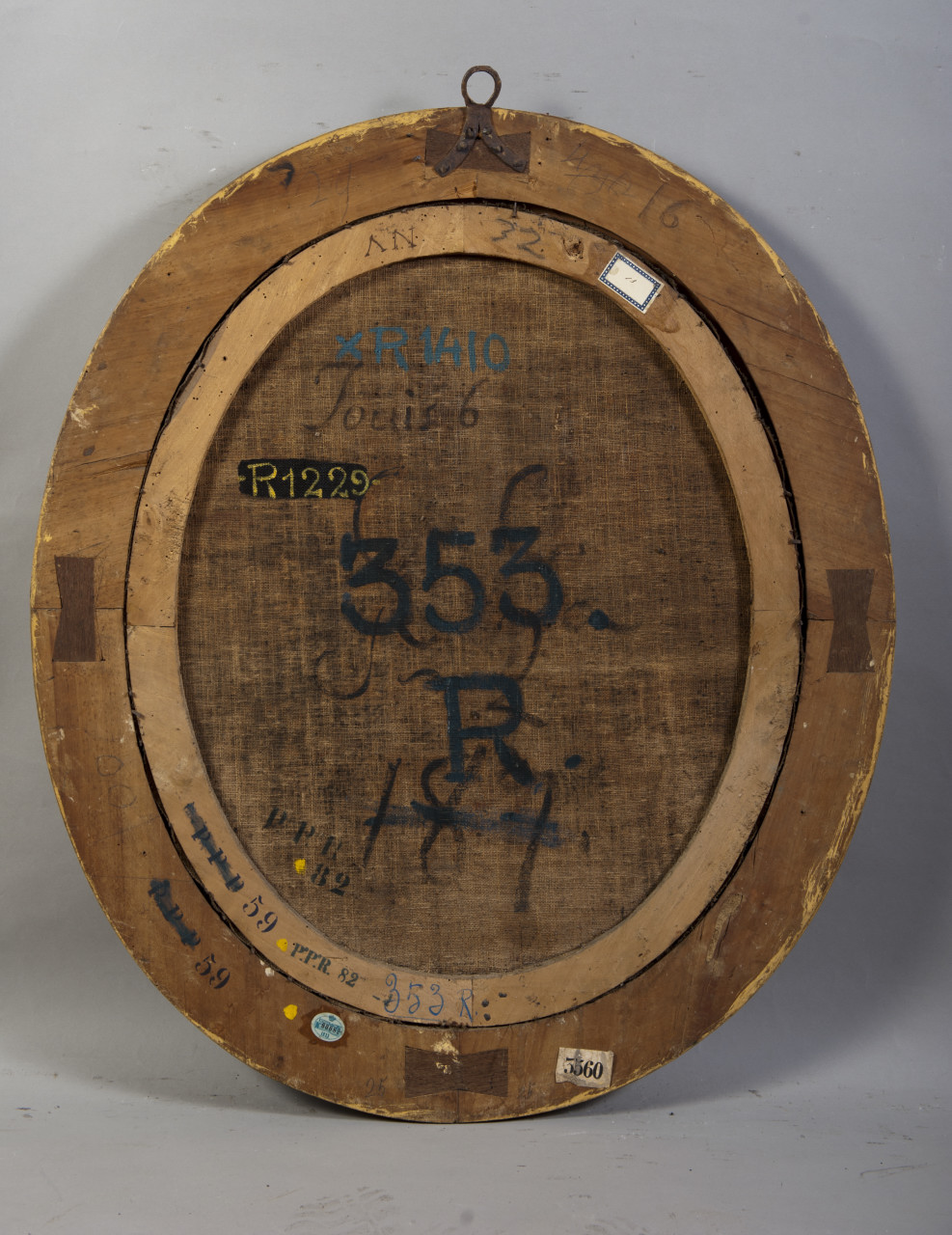- NOTIZIE STORICO CRITICHE La tela fa parte di un ciclo, rappresentante i sovrani dei principali regni europei di età medievale e moderna. Le opere, pur rispondendo a modelli iconografici differenti, corrispondono per formato, ovale, tipologia della cornice, e modalità di realizzazione dell’iscrizione dipinta per riconoscere l’effigiato. Sino al terzo quarto del XIX secolo si trovavano presso il Reale Castello di Moncalieri.(Archivio di Stato di Torino, Sezioni Riunite, Casa di Sua Maestà, Inventari, Moncalieri, 12922, 25 luglio 1879). Da un punto di vista stilistico e competitivo i dipinti si possono ricondurre alla seconda metà del XVIII secolo. Si tratta forse di derivazioni da prototipi incisori o da cicli conservati in altre collezioni principesche da individuarsi. L’opera rappresenta Luigi VI di Francia, detto il Grosso (Parigi, 1081 – Béthisy-Saint-Pierre, 1137), re di Francia dal 1108 alla morte, quinto sovrano della dinastia Capetingia