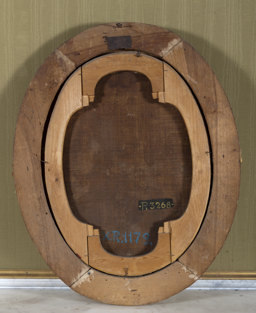 - NOTIZIE STORICO CRITICHE Il personaggio effigiato, come indicato sul retro della tela, si deve riconoscere in Filippo V di Borbone (Versailles, 1683-Madrid, 1746) re di Spagna, rappresentato in età giovanile. Appena assunta, nell’anno 1700, la corona già di Carlo II d’Asburgo, egli adottò, per alcuni anni, con chiari intenti legittimatori, in considerazione della discussa successione che determinò il conflitto europeo noto come Guerra di Successione Spagnola, l’abbigliamento di derivazione seicentesca, ancora in uso alla corte di Madrid, ovvero l’abito di colore nero, dalle ampie maniche e chiuso da golilla o colletto piatto inamidato. Unici elementi distintivi sono la parrucca, secondo la moda in uso presso la corte di Parigi tra gli ultimi decenni del XVII secolo e i primi del successivo, e la placca dell’ordine dinastico francese dell’Ordine dello Spirito Santo