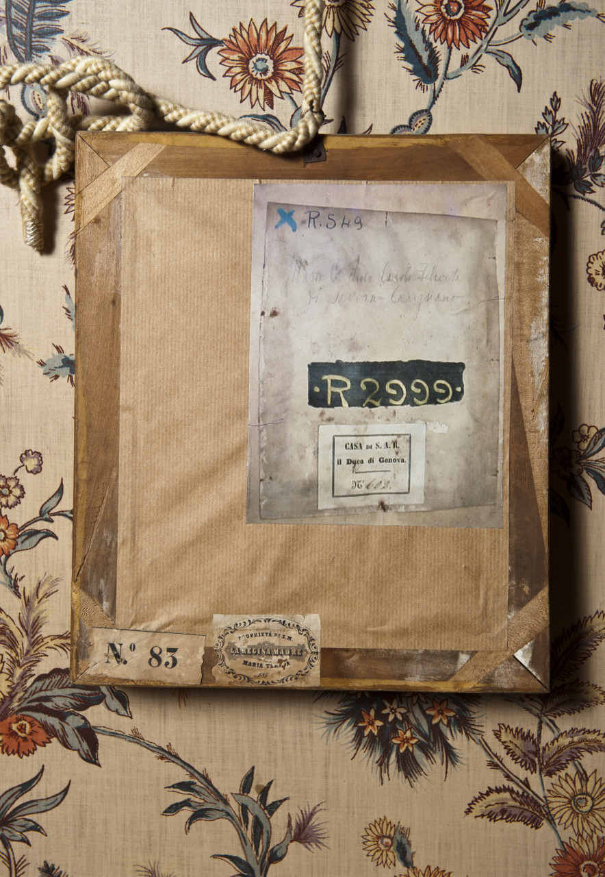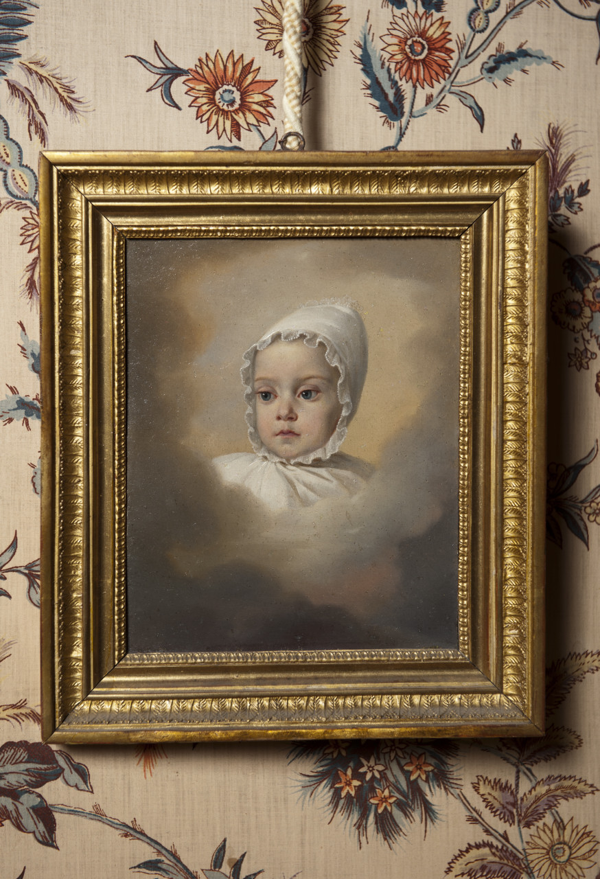 - NOTIZIE STORICO CRITICHE La tela, secondo quanto indicato in una iscrizione presente sul resto dell’opera, che Noemi Gabrielli attribuiva alla mano di Umberto II, raffigura Maria Cristina Carola Felicita di Savoia Carignano, unica figlia femmina nata dall’unione tra il re di Sardegna Carlo Alberto e l’arciduchessa Maria Teresa Asburgo Lorena Toscana. La bambina nata nel 1826, morì un anno più tardi e venne tumulata nella cappella cosiddetta degli infanti della cripta reale nella Basilica di Superga. L’iconografia del dipinto, raffigurante un infante entro le nubi, ossia assunto in cielo, conferma questa identificazione. Inoltre, un’etichetta posta sulla cornice conferma che il dipinto appartenne alle raccolte private della regina Maria Teresa, passando poi, per trasmissione ereditaria, ai duchi di Genova, come testimoniato da una seconda etichetta. Il ritratto, pur evocativo, mostra nei tratti del volto una buona qualità che richiama la pittura dei ritrattisti attivi a corte in questa fase come Pietro Ayres e dovette essere eseguito, presumibilmente, poco dopo la morte della bambina per serbarne memoria. La tela si colloca in una sala che venne riallestita all’inizio del Novecento, in una fase in cui, dopo decenni di abbandono e dopo l’assassinio di Umberto I a Monza, che determinò l’abbandono della villa lombarda come luogo di villeggiatura della famiglia reale, il castello di Racconigi fu oggetto di un nuovo interesse da parte dei Savoia. Gli appartamenti dell’area di ponente furono destinati a ospitare principi in visita o ospiti illustri. Successivamente, a partire dagli anni Trenta del Novecento, subirono ulteriori trasformazioni, dopo la donazione della residenza al principe ereditario Umberto II. La serie dei ritratti degli infanti di Casa Savoia di varia epoca qui posizionati, rientra, probabilmente, tra gli acquisiti effettuati da parte di Umberto II dagli anni Venti del Novecento per completare la quadreria dinastica