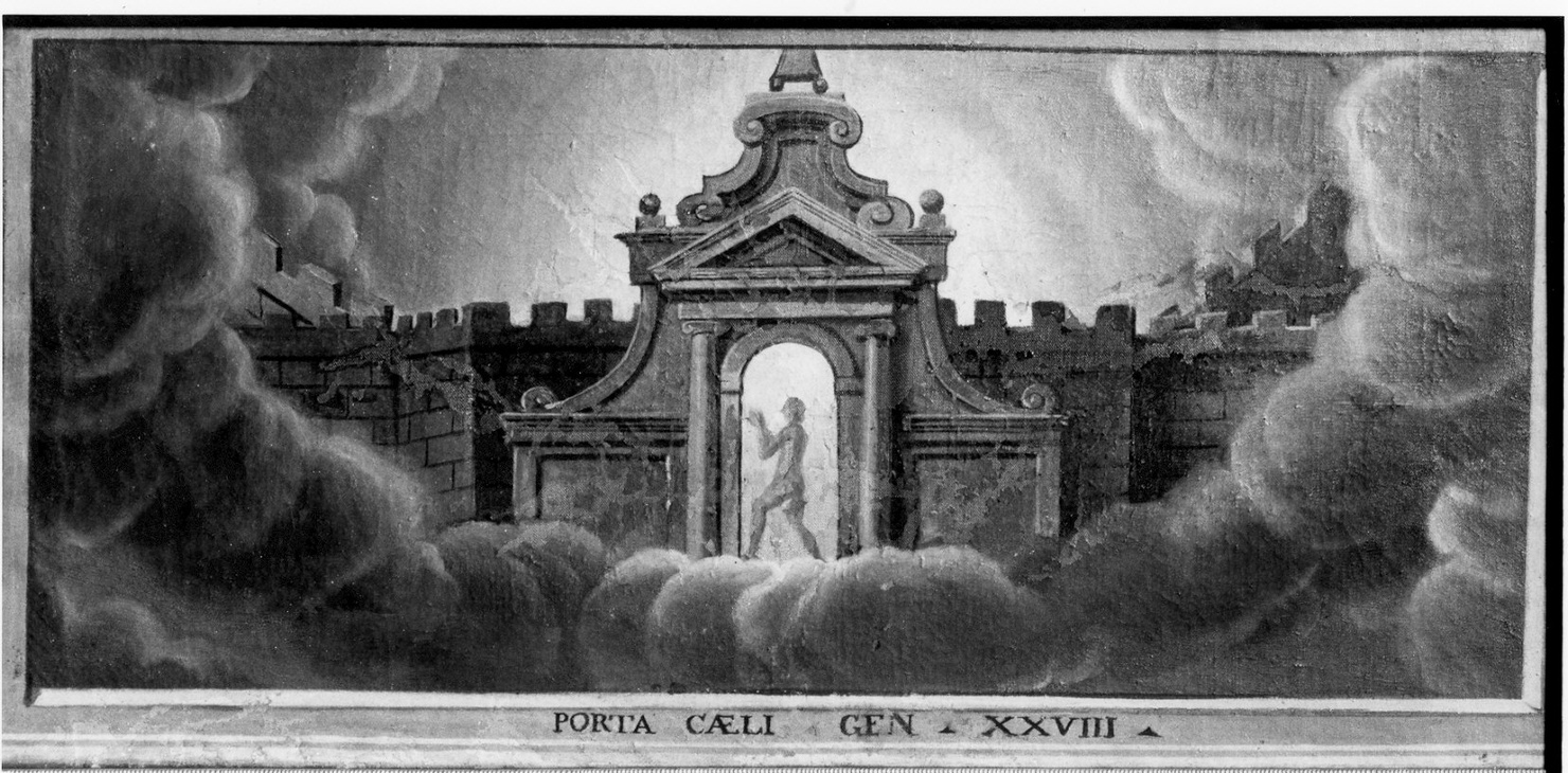 - ISCRIZIONI in basso - PORTA CAELI. GEN. XXVIII - lettere capitali - a pennello - latino